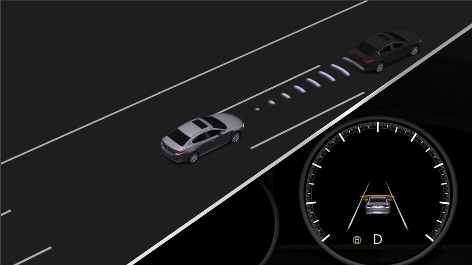 The DSA is a system which provides advice for maintaining the appropriate distance between vehicles and notifies the driver of the recommended, safe distance to maintain with a vehicle ahead. The system measures the distance between your vehicle and a vehicle ahead while the vehicle speed is about 30 km/h (19 mph) or faster. If the distance between your vehicle and a vehicle ahead is close, the system alerts the driver of a possible collision using an indication on the display.