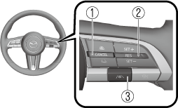 When the TJA switch is pressed while the Mazda Radar Cruise Control (MRCC) or the Mazda Radar Cruise Control with Stop & Go function (MRCC with Stop & Go function) system is operating, the TJA operates. In addition, when the MRCC switch is pressed while the TJA is operating, the Mazda Radar Cruise Control (MRCC) or the Mazda Radar Cruise Control with Stop & Go function (MRCC with Stop & Go function) system operates.