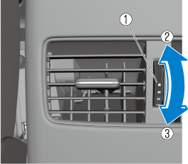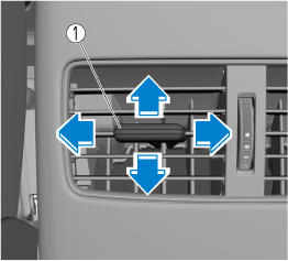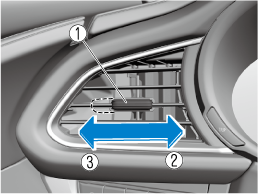 The figure indicates the air vent on the left side of the instrument cluster. The operation direction for the air vent on the right side of the instrument cluster is symmetrical with the air vent on the left side.