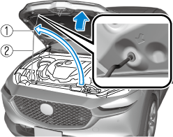 Grasp the support rod in the padded area and secure it in the support rod hole indicated by the arrow to hold the hood open.