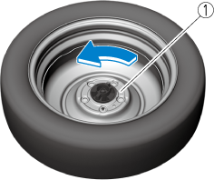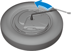 If the spare tire hold-down bolt cannot be loosened, hold the edge of the tire and turn it counterclockwise until the spare tire hold-down bolt rotates.