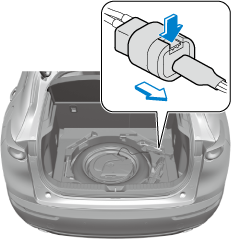 Turn the spare tire hold-down bolt counterclockwise and remove the sub-woofer and the spare tire.