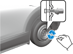 Turn the jack handle counterclockwise using the lug wrench and lower the vehicle.