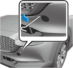 Wrap a flathead screwdriver or similar tool with a soft cloth to prevent damage to a painted bumper, and open the cap located on the front or rear bumper.