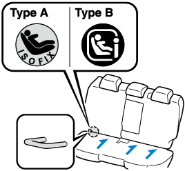 • The markings above the ISOFIX/LATCH*1 lower anchors indicate the locations of the ISOFIX/LATCH*1 lower anchors for the attachment of a child-restraint system.