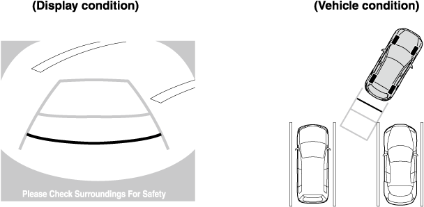 The operation of the rear view monitor when reversing the vehicle varies depending on the traffic, road, and vehicle conditions. The amount of steering and the timing also varies depending on conditions, so confirm the surrounding conditions directly with your eyes and steer the vehicle in accordance with the conditions.