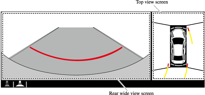 The top view/rear view, top view/rear wide view displays when all of the following conditions are met.