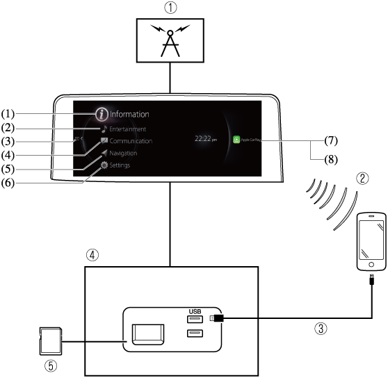 You can use Apple CarPlay™ by connecting an iPhone® compatible with Apple CarPlay™ to the USB port. |