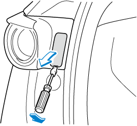 If you are changing the right bulb, start the engine, turn the steering wheel all the way to the left, and turn off engine. If you are changing the left bulb, turn the steering wheel to the right.
