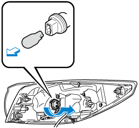 Turn the socket and bulb assembly counterclockwise and remove it.