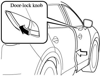 To lock any door using its door-lock knob from the outside, press the door-lock knob to the lock position and close the door (holding the door handle in the open position is not required).