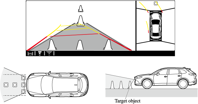 The parking sensor detection range has limitations. For example, obstructions closing in from the side and objects short in height may not be detected. Always confirm the safety around the vehicle visually when driving.