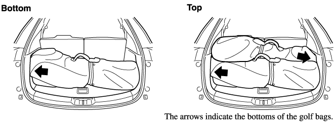 Top: Place the second golf bag with its bottom pointed to the right in the luggage compartment.