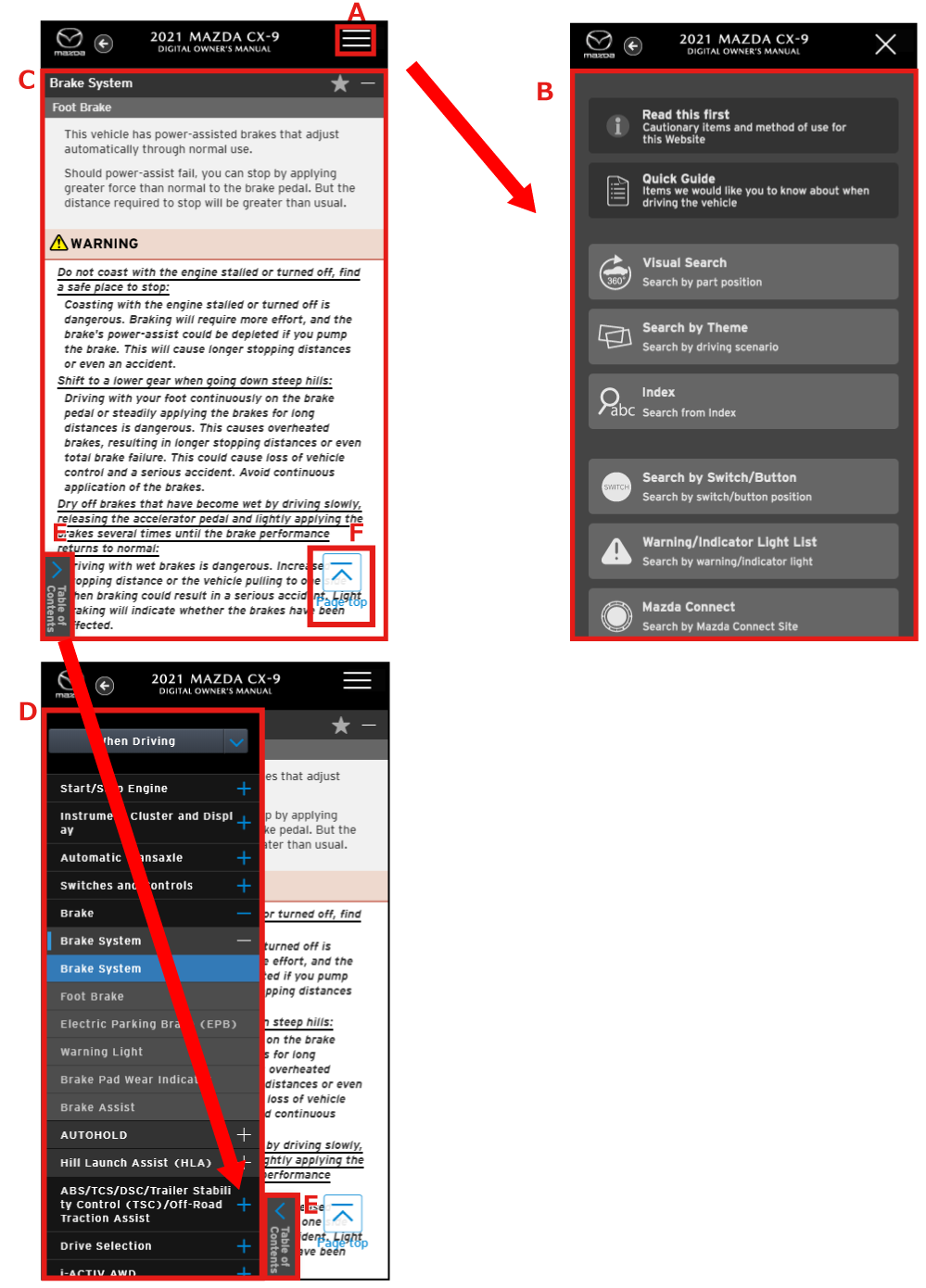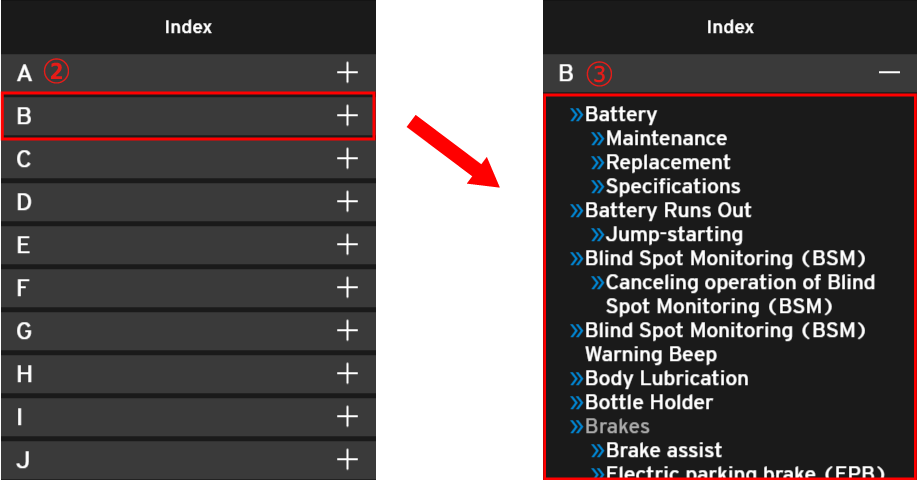 You can search for the information you need by selecting the scenario in which you are driving the vehicle.