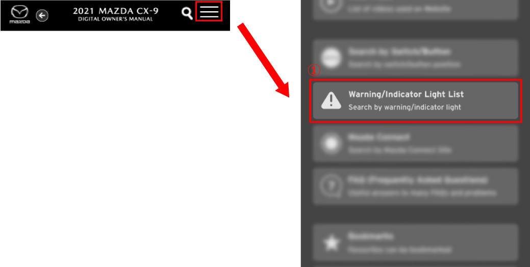 You can search for the information you need by clicking on a warning/indicator light displayed in the instrument cluster.