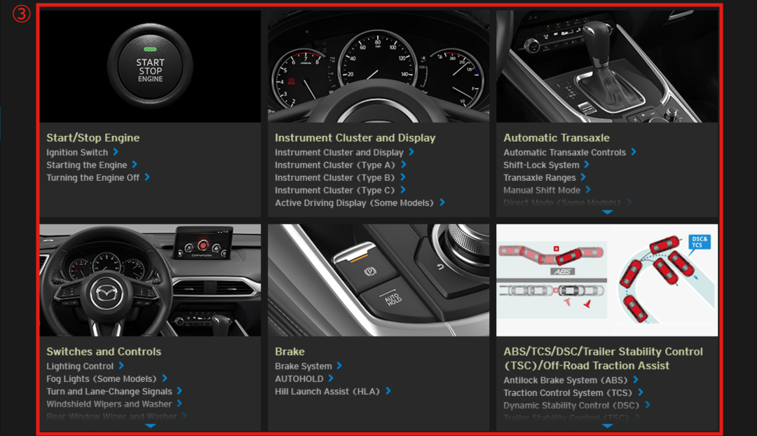 Illustrations complement the text to best explain how to enjoy your Mazda. By reading this Digital Owner's Manual, you can learn about the features, important safety information, and driving under various road conditions.