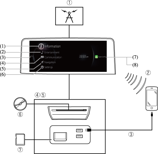 You can use Apple CarPlay™ by connecting an iPhone® compatible with Apple CarPlay™ to the USB port. |