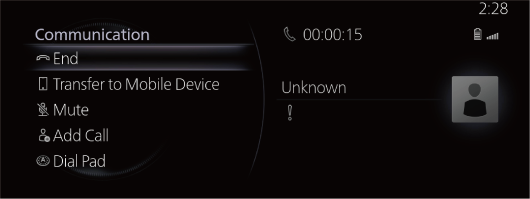 Transfers a call from a device (mobile phone) to hands-free. Communication between devices (mobile phone) can be switched to Bluetooth® Hands-Free. |