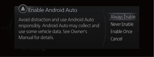 Always Enable: Enables Android Auto -™ each time without a confirmation.