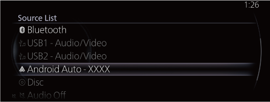 The Android Auto -™ screen can also be displayed by selecting “Android Auto” on the Source List screen (Only some vehicle models).