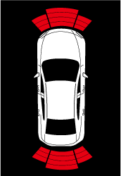 Front ultrasonic sensor: Approx. 45.0―35.0 cm (17.7―13.7 in) Front corner ultrasonic sensor: Approx. 38.0―25 cm (14.9―9.8 in) |