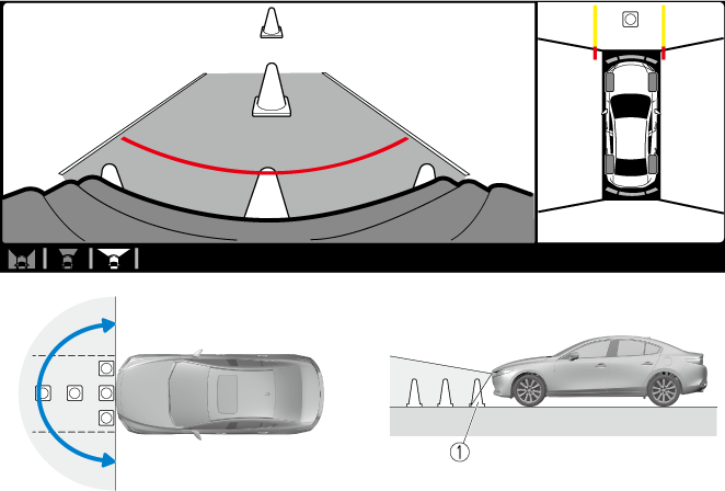 Indicates the approximate width of the vehicle and the distance (from front end of bumper) in front of the vehicle.