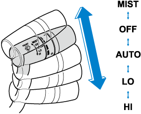 When removing ice or snow, or cleaning the windshield, always make sure the wiper lever is in the OFF position.