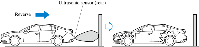 In the following cases, the ultrasonic sensors (rear) cannot detect obstructions and the SCBS R may not operate.