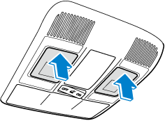 When the overhead light switch is in the door or off position, press the lens to illuminate the front map lights, and then press the lens again to turn them off.