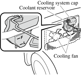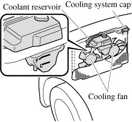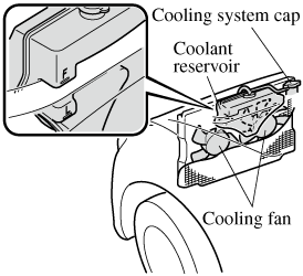 If the cooling fan does not operate while the engine is running, the engine temperature will increase. Stop the engine and call an Authorized Mazda Dealer.