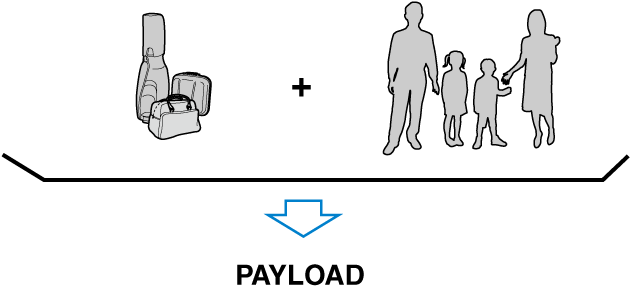 Examples: Based on a single occupant weight of 68 kg (150 lbs), and a value of 385 kg (849 lbs) for the “combination weight of occupants and cargo should never exceed”: