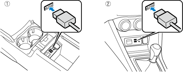 Insert an Android™ Smartphone-genuine connector cord into the USB port to connect the Android™ Smartphone. Insert or pull out the plug with the plug perpendicular to the USB port.