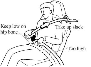 Position the lap belt as low as possible, not on the abdominal area, then adjust the shoulder belt so that it fits snugly against your body.