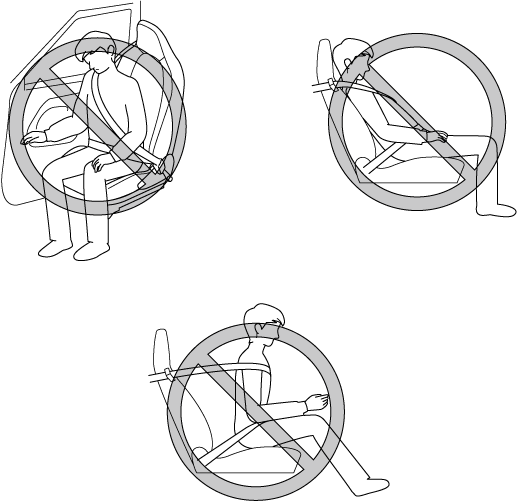 Sitting in the passenger's seat with a posture which makes it difficult for the passenger occupant classification sensor to detect the occupant correctly is dangerous. If the passenger occupant classification sensor cannot detect the occupant sitting on the passenger's seat correctly, the passenger front and side air bags and pretensioner system may not operate (non-deploy) or they may operate (deploy) accidentally. The passenger will not have the supplementary protection of the air bags or the accidental operation (deployment) of the air bags could result in serious injury or death.