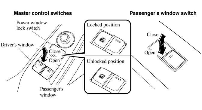 The passenger windows may be opened or closed using the master control switches on the driver's door.