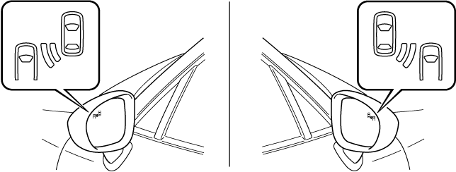 The BSM system detects vehicles approaching from the rear and turns on the BSM warning lights equipped on the door mirrors according to the conditions. Additionally, while a BSM warning light is illuminated, if the turn signal lever is operated to signal a turn in the direction in which the BSM warning light is illuminated, the BSM warning light flashes.