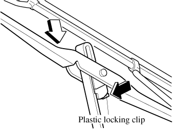 Raise the wiper arm and turn the blade assembly to expose the plastic locking clip.