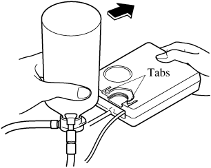 Install the bottle to the air compressor and press it in until the left and right tabs are engaged securely.