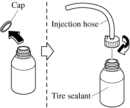 Do not shake the bottle excessively. Otherwise, the sealant could spray out of the injection hose, and if the sealant contacts clothing or other objects, you may not be able to remove it.