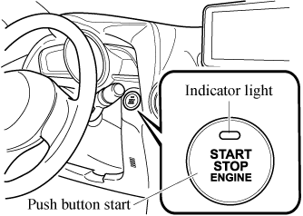 After starting the engine, the push button start indicator light (amber) turns off and the ignition switches to the ON position.