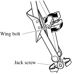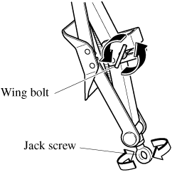 Insert the wing bolt into the jack with the jack screw pointing down and turn the wing bolt clockwise to temporarily tighten it.