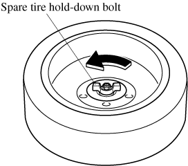 For vehicles not equipped with a sub-woofer, turn the spare tire hold-down bolt counterclockwise and remove the spare tire.