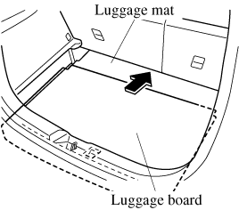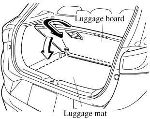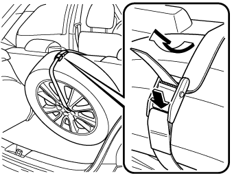 Insert the luggage compartment cover from the top of the luggage compartment opening with the cloth side of the cover facing outward, and slide it between the flat tire and the inside perimeter of the luggage compartment opening.