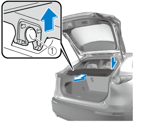 Press the luggage compartment cover upward from near the pins and remove the luggage compartment cover from the pins.