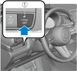 When pressing the switch, the i-stop function stops and the i-stop OFF switch indicator light turns on. If the switch is pressed again, the i-stop function becomes operational and the i-stop OFF switch indicator light turns off.