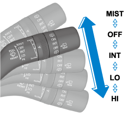 Rotate the switch upward (FAST direction) to shorten the interval time of the wiper operation, and rotate the switch downward (SLOW direction) to lengthen it.