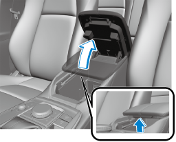 If a rear seatback is folded, open/close the console lid while it is slid to the 1st step. The console lid and the rear seat (head restraint) will contact each other and the console lid cannot be opened/closed while it is slid to the 2nd step.