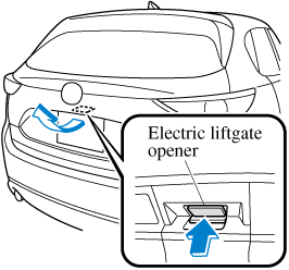 Press the electric liftgate opener on the liftgate and raise the liftgate. The hazard warning lights flash twice and the liftgate opens automatically after the beep sound is heard.