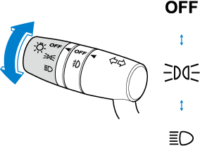 Turn the headlight switch to turn the headlights and other exterior lights on or off.