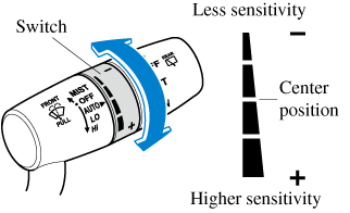 From the center position (normal), rotate the switch upward for higher sensitivity (faster response) or rotate it downward for less sensitivity (slower response).